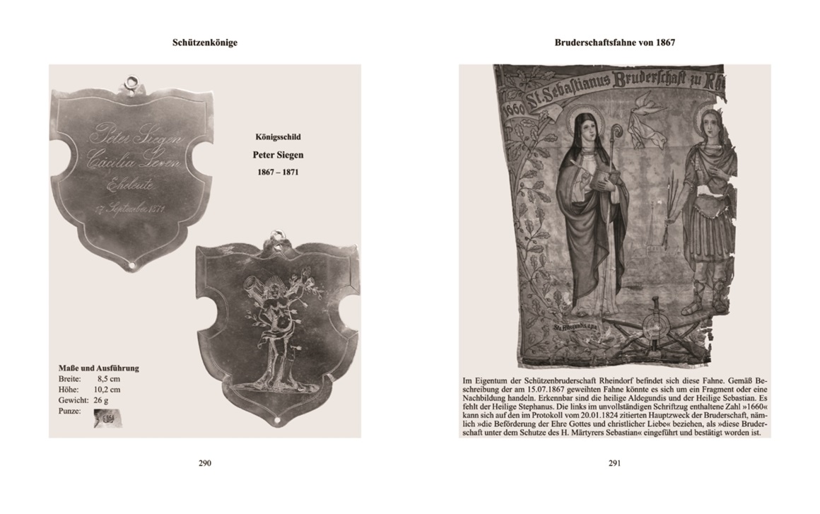 Abbildung Königsschild und Fragment der Bruderschaftsfahne (Band II, Seiten 290 und 291)