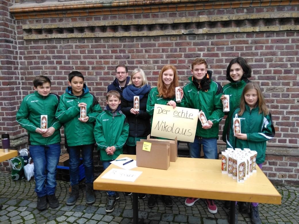 Im Herbst 2017 haben wir uns das erste Mal entschieden, an der Nikolausaktion des BdSJ teilzunehmen. Bei dieser Aktion wurden (echte) Schokoladennikoläuse (aus Fairtrade - Schokolade) verkauft und pro Stück 0,50 Euro an den Kinderschutzbund für die Prävention vor sexueller Gewalt an Kindern und Jugendlichen gespendet. Wir haben die Nikoläuse nach einem gemeinsamen Besuch der Sonntagsmesse bei uns in der Gemeinde vor der Kirche und intern in der Bruderschaft verkauft. Wurden 2017 noch 153 Schokonikoläuse verkauft, waren es 2018 bereits 324 Stück.