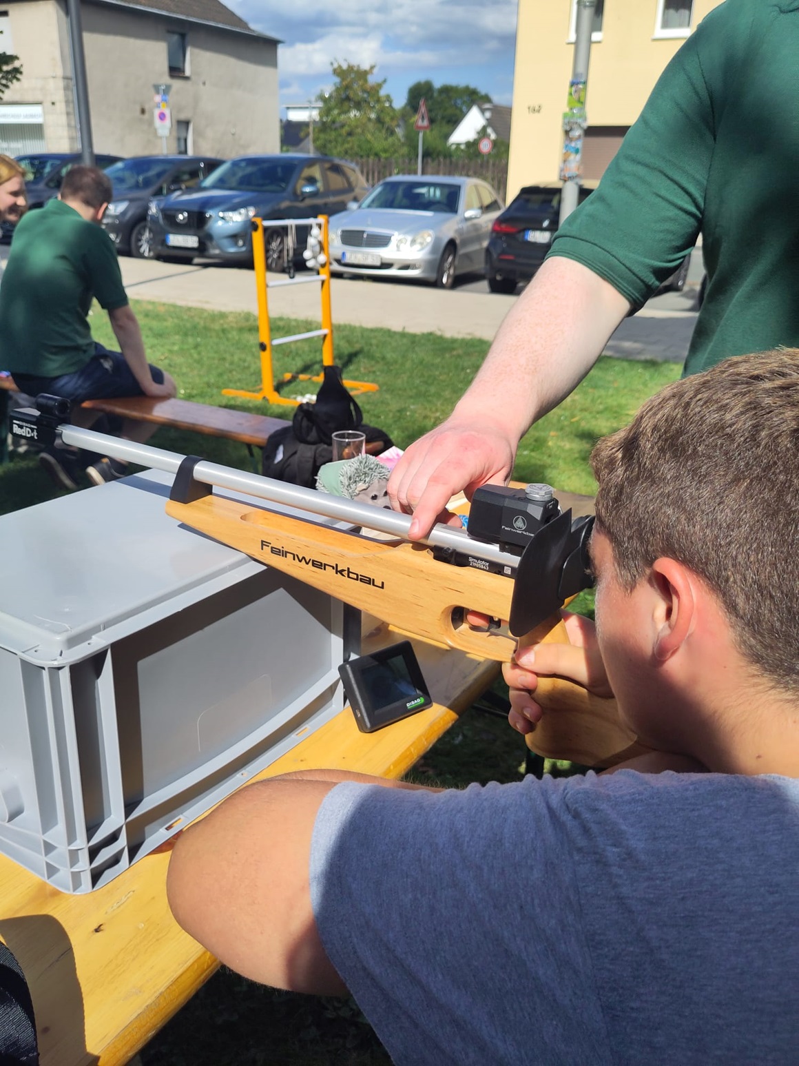 Am vergangenen Freitagabend fand auf unserem Hochstand im Schützenhaus ein besonderer Schießwettbewerb statt. Bei bestem Wetter und in fröhlicher Stimmung konnten sowohl erfahrene Schützen als auch Neulinge ihre Fähigkeiten unter Beweis stellen. In einem spannenden Wettbewerb traten per Los zusammengestellte Teams gegeneinander an. Beim Fachsimpeln über die beste Technik und regem Austausch zwischen erfahrenen Schützen und interessierten Anfängern war die Begeisterung für den Schießsport für jeden zu spüren. Nach spannenden Matches und einem packenden Finale standen Peter und Yannick als strahlende Sieger fest. Aber auch die unterlegenen Teams hatten Spaß am sportlichen Wettkampf und hoffen auf eine baldige Revanche.
